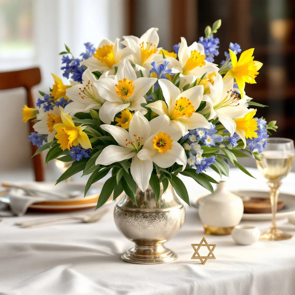 “Passover spring flowers represent renewal and freedom during the holiday, which coincides with the season’s natural rebirth. Blue and white flowers hold particular traditional importance, as blue represents the heavens and freedom reflecting the Israelites’ liberation from Egypt, while white signifies purity and renewal.”2